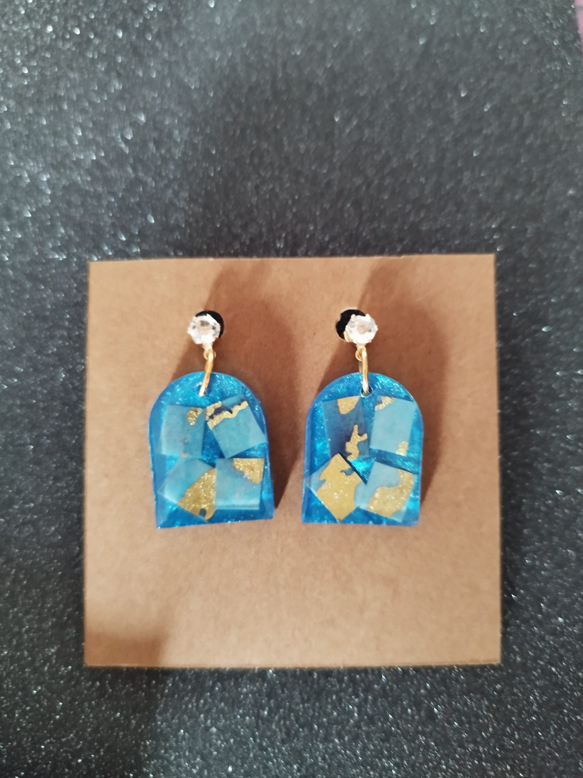 Éclats de Lagon doré – Des boucles d’oreilles en résine, aux reflets bleu lagon et doré, pour un look frais, solaire et élégant.