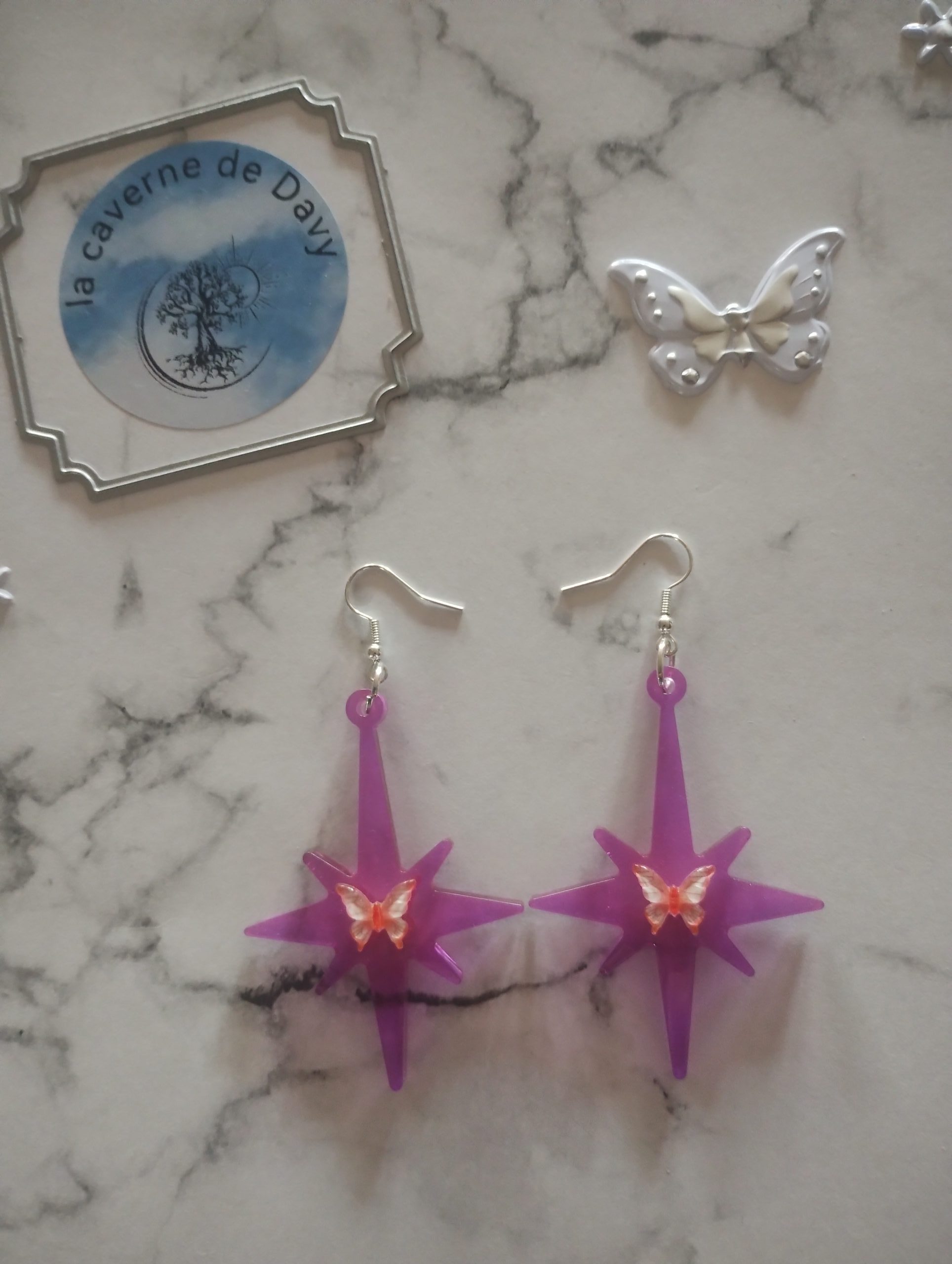 Cette jolie paire de boucle d’oreille présente un design délicat  d’un papillon et d’une étoile, ce qui en fait un accessoire unique.