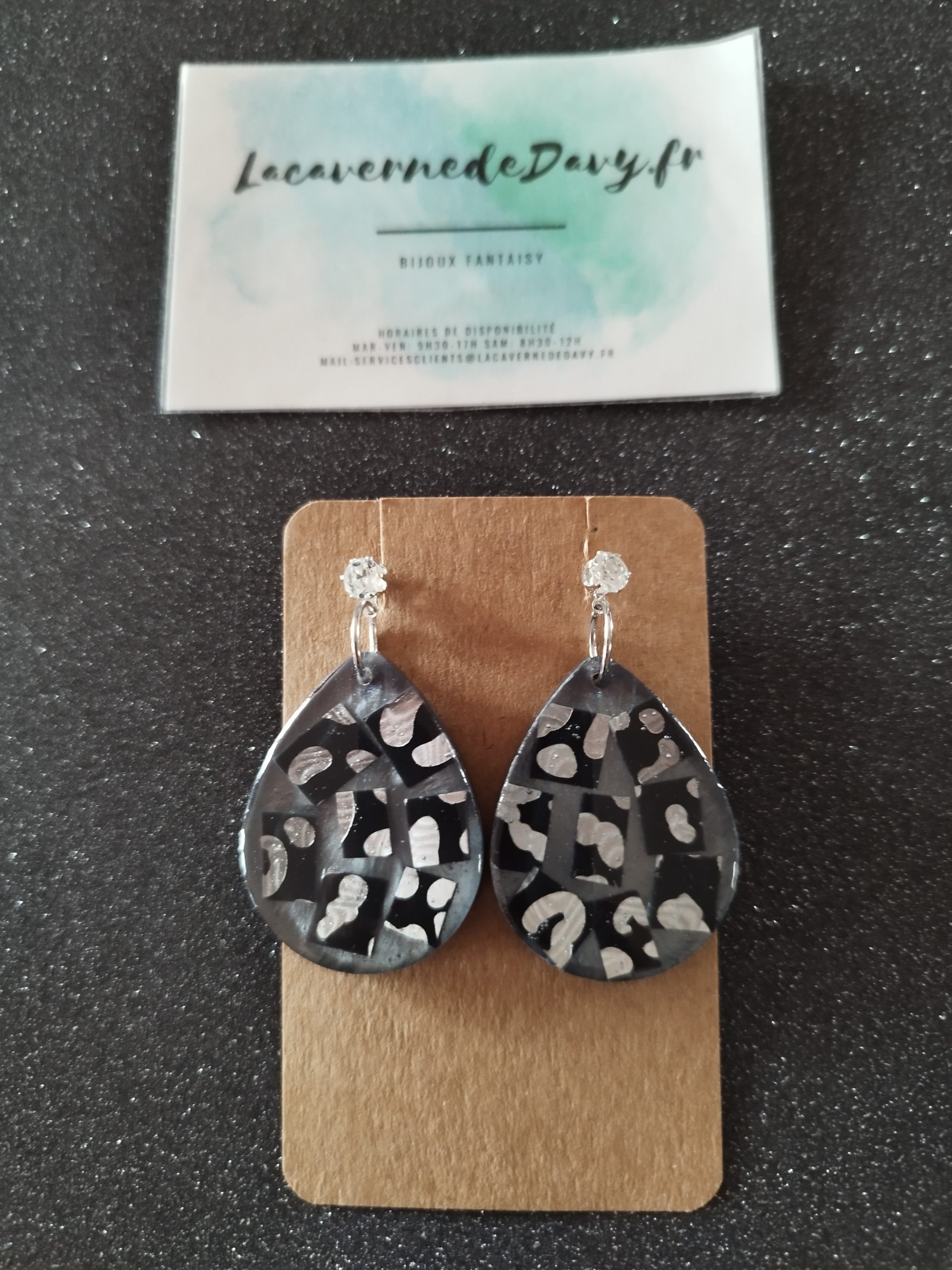 Éclipse d’Argent est une création élégante et contrastée. Ces boucles d’oreilles en forme de goutte d’eau mêlent le noir profond à l’éclat argenté, pour un effet chic et mystérieux. Légères et raffinées.