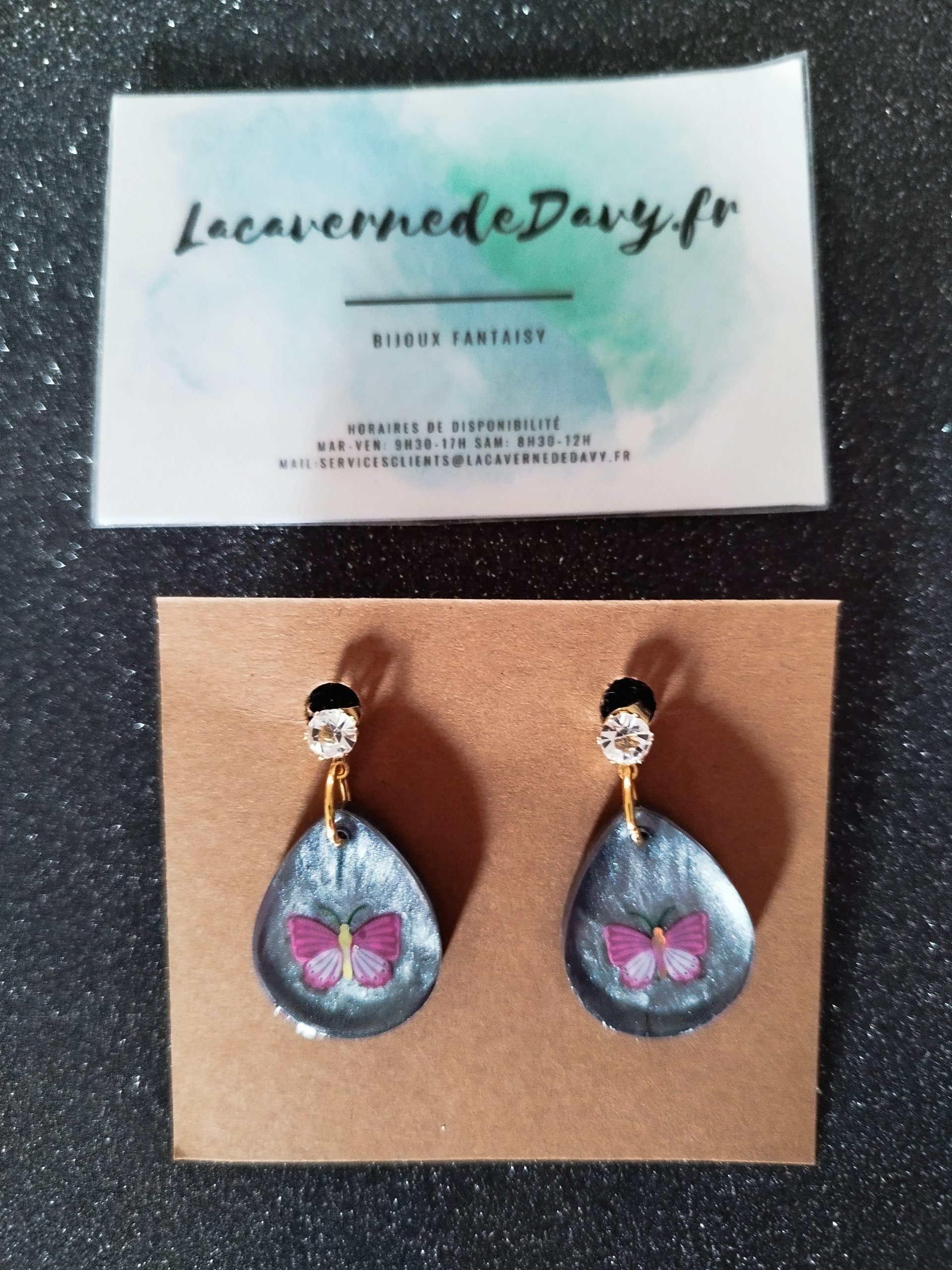 Boucles d’oreilles résine — papillon rose : élégance légère, charme assuré, symbole de douceur et de grâce.