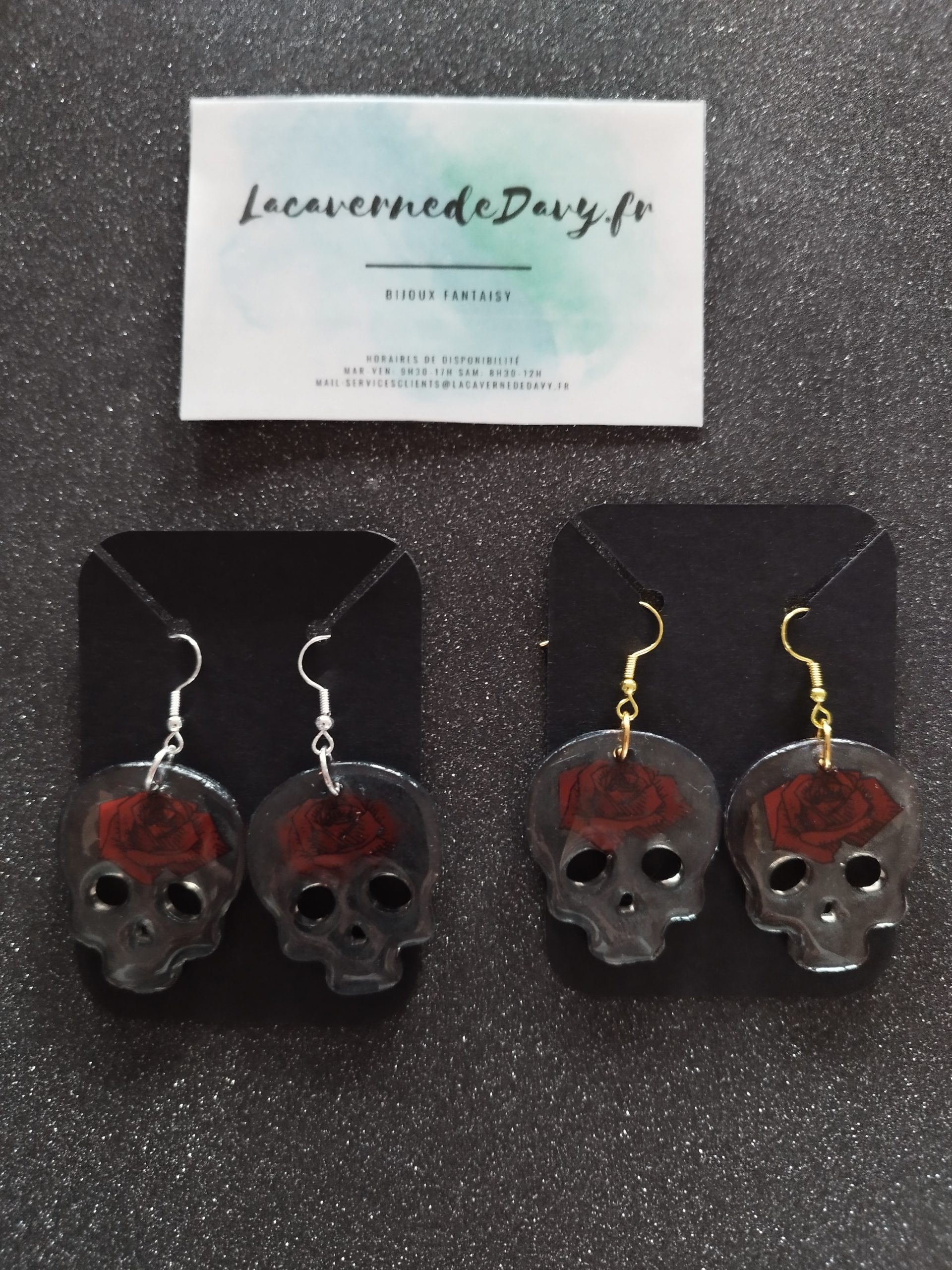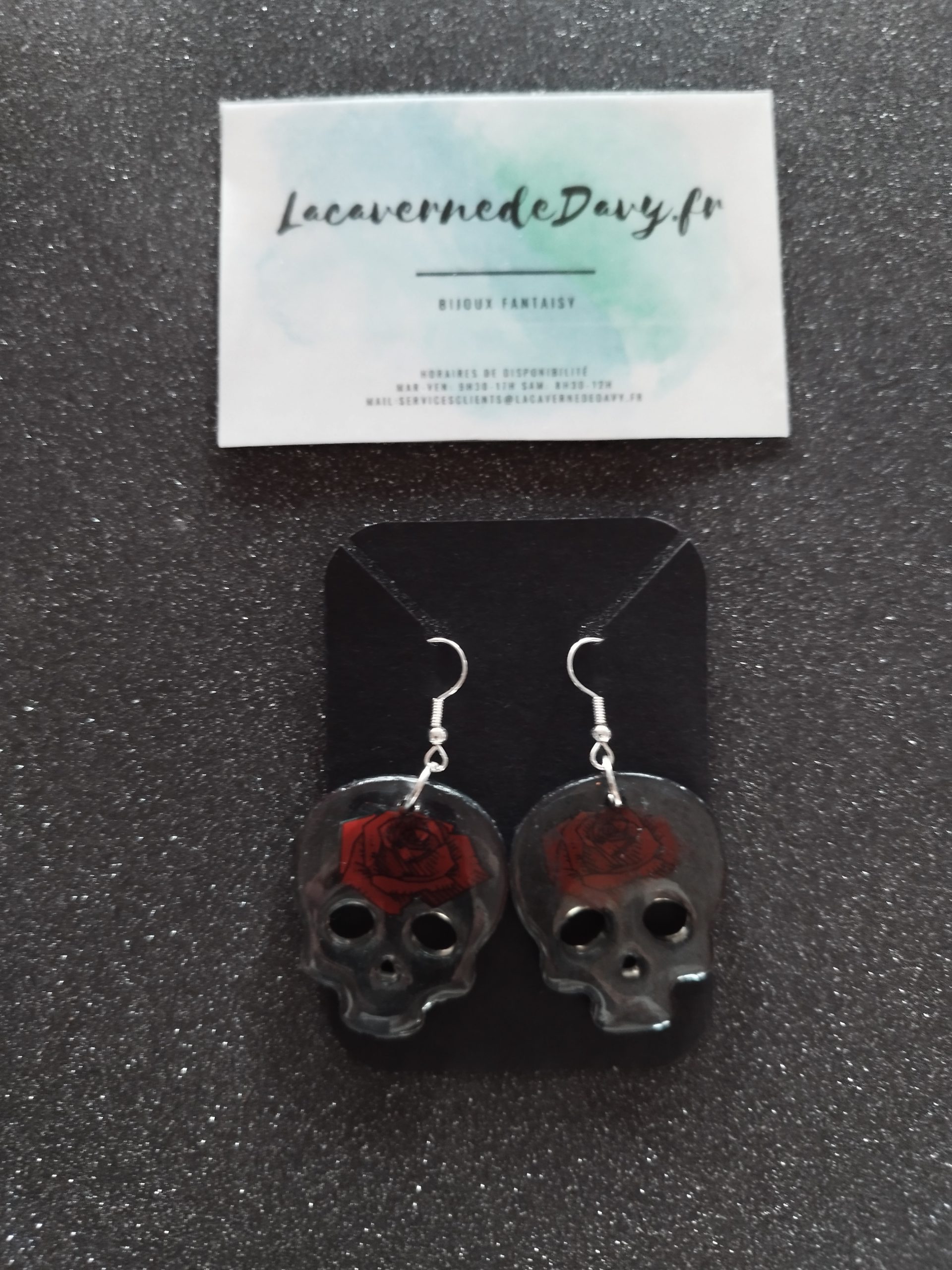 Affichez un look mystérieux et audacieux avec ces boucles d’oreilles en forme de crâne, sublimées par une délicate rose rouge incrustée. Un mélange parfait entre l’élégance et l’esprit rebelle, idéal pour les amoureuses du style gothique, rock ou Halloween.💀 🌹
