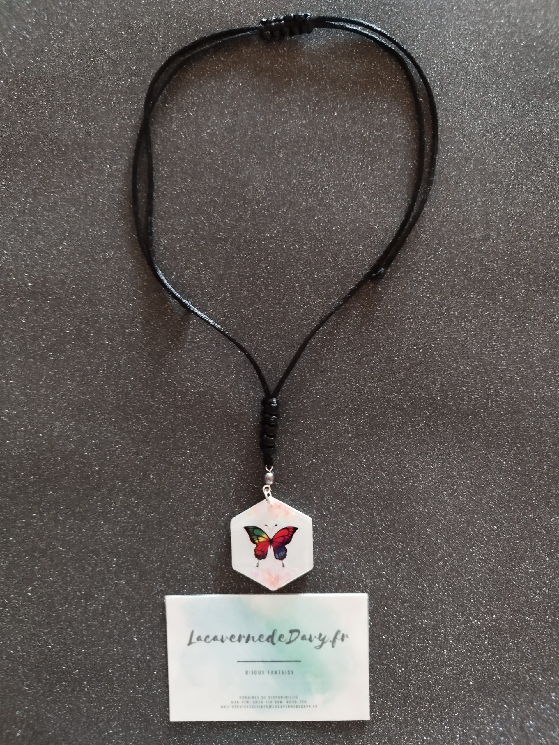 Faites entrer la magie et la couleur dans votre quotidien avec ce magnifique collier papillon multicolore,fait main.