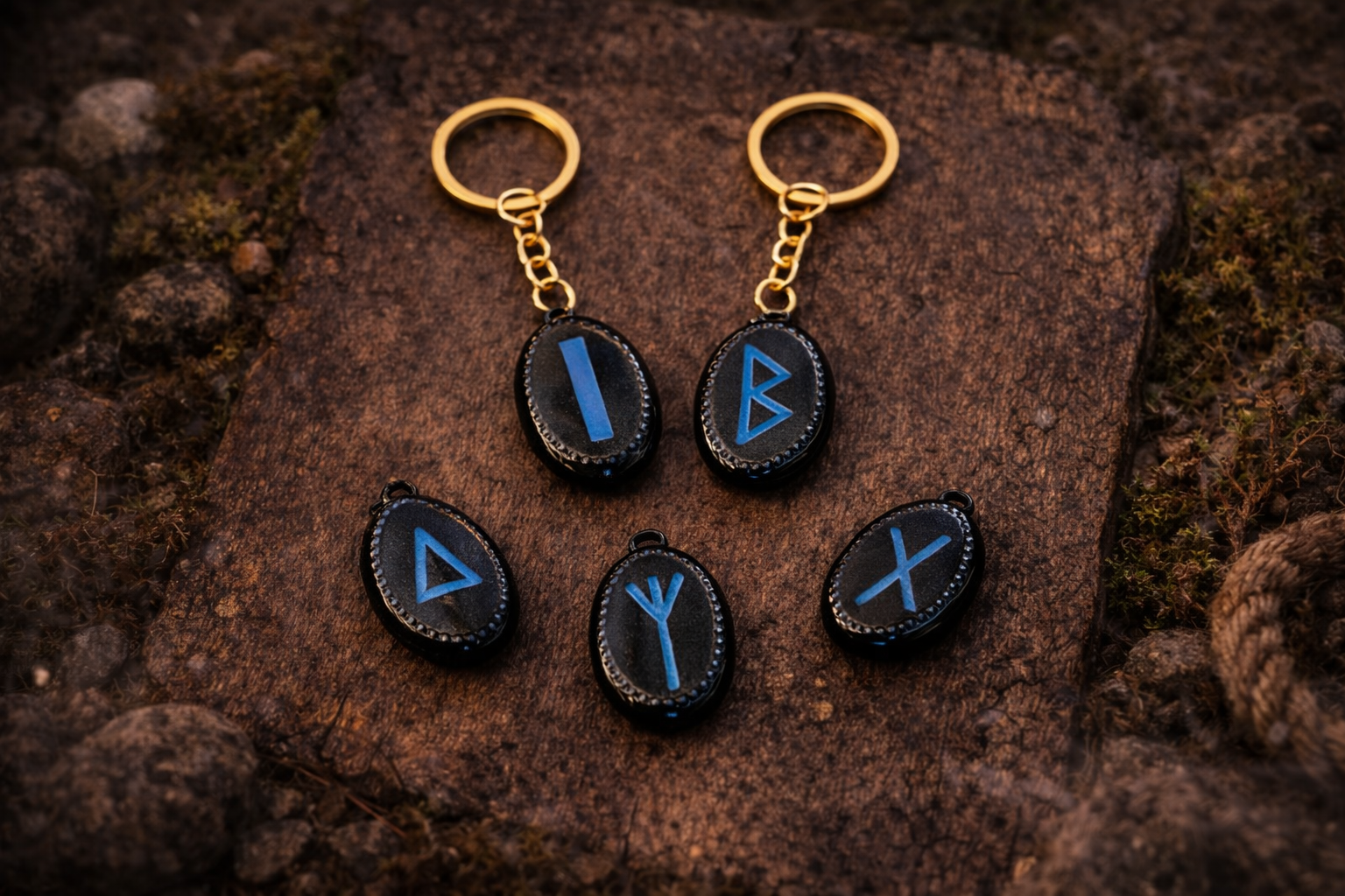 Collier ou porte-clé fantaisie orné de runes vikings, symboles puissants issus de la tradition nordique. Chaque rune évoque la force, la protection et la sagesse des anciens peuples scandinaves. Un bijou chargé de sens, à porter près de soi ou à accrocher à ses clés.