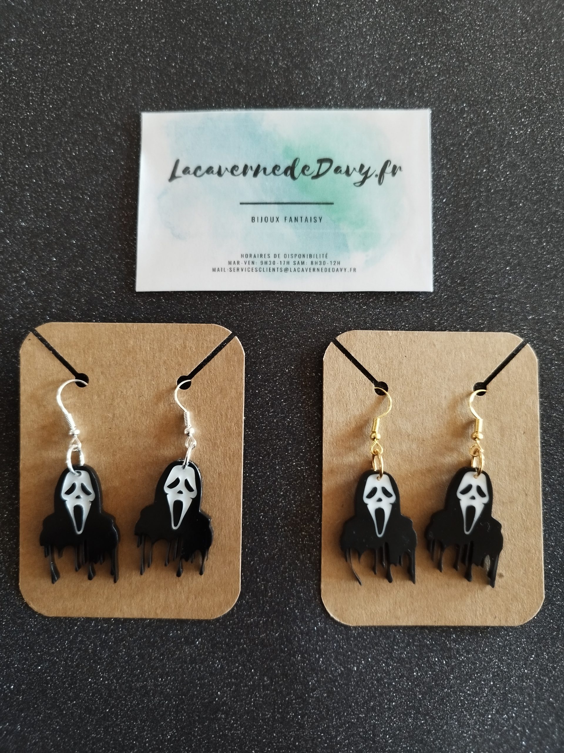 Osez affirmer votre style avec ces boucles d’oreilles inspirées du masque culte. À la fois effrayantes et fun, elles sont parfaites pour sublimer vos tenues d’Halloween, vos soirées à thème… ou simplement pour afficher votre côté décalé au quotidien !